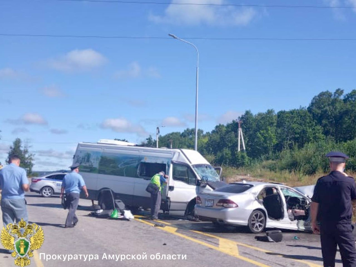 В прокуратуре Амурской области уточнили, что ДТП произошло в районе Чигиринского водохранилища. Лоб в лоб столкнулись рейсовый автобус сообщением Свободный-Благовещенск и автомобиль Toyota Crown. По факту ДТП проводится проверка исполнения законодательства в сфере транспортного обслуживания населения.