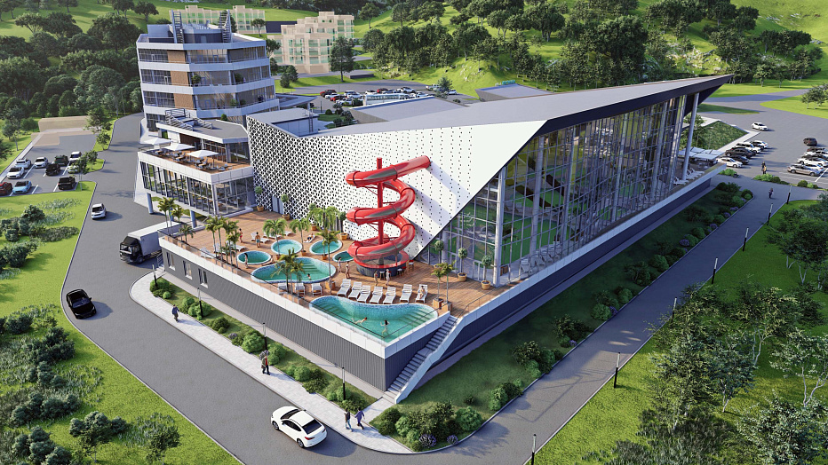 «Проект включает строительство гостевого домика на 4 номера, апарт-отеля из 4-х корпусов, гостиничного комплекса, а также аквапарка и другой туристической инфраструктуры. Общий номерной фонд проекта — 238 номеров, рассчитанных на проживание 496 человек», — сказано в сообщении КРДВ.